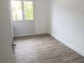 Cuisine séparée, séjour lumineux et salle à manger attenante, deux chambres avec placard entre les deux, WC séparé, et salle de bains.